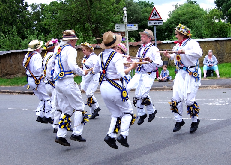 U Engleskoj možete videti i oblik istorijskog folklornog plesa (Morris dance), koji datira daleko u prošlost, u srednji vek. U vreme Uskrsa, ljudi obučeni u belu odeću, sa maramama i zvončićima na svojim zglobovima plešu i na taj način simboliziju dolazak proleća.